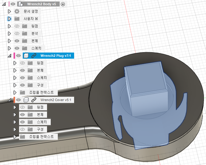 ※ 부속품들은 조립품 설계에서 탑다운으로 설계하는 것이 스케치하기 편합니다. 부품 삽입 방법은 생략합니다.