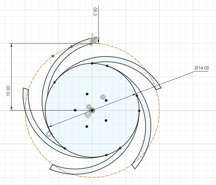 5점 래치 날개를 그려줍니다. 0.4mm 노즐이므로 날개의 두께는 0.4 배수로 그립니다.