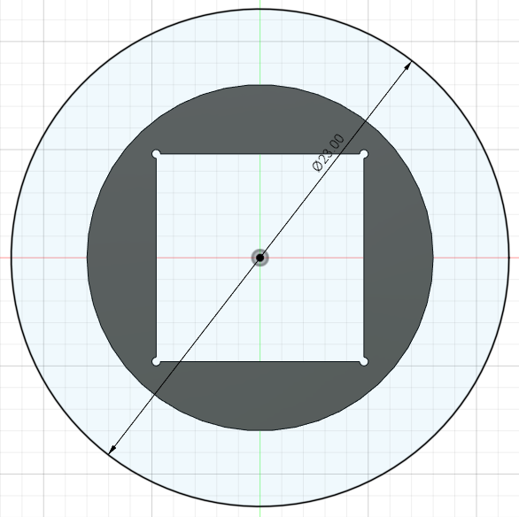 렌치 툴에 결합되는 소켓을 스케치합니다. 크기는 9.525mm보다 커야 하며, 정확한 크기는 프린터 성능에 따라 조정합니다.