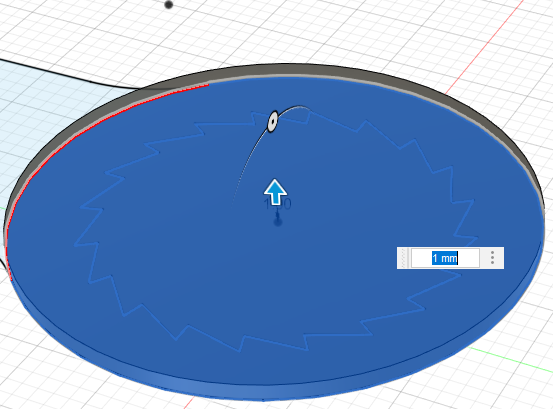 외형 사이즈인 30mm 만큼 원을 그립니다. 그다음 1mm 만큼 돌출시킵니다.