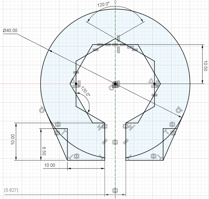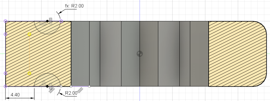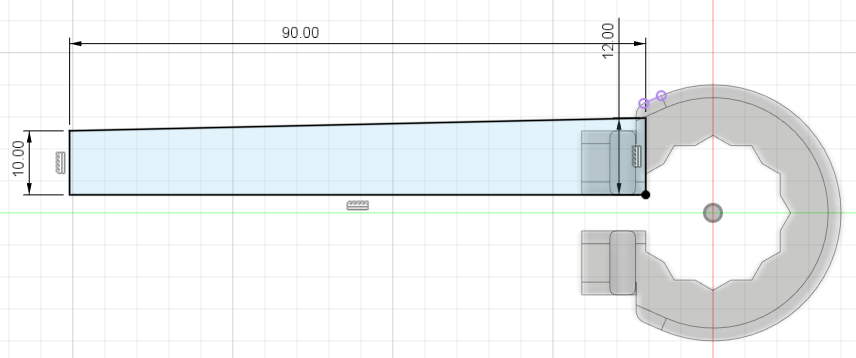 손잡이의 안쪽 끝부분을 파내야 하므로 위와 같이 스케치합니다.