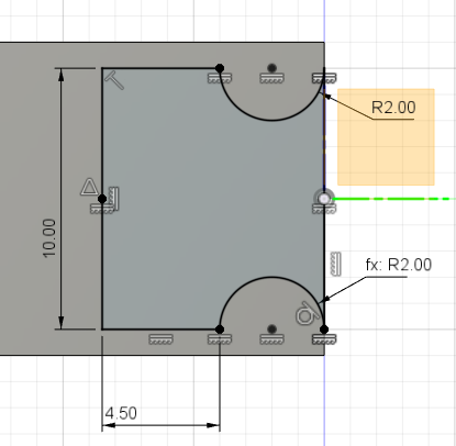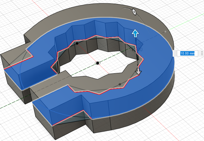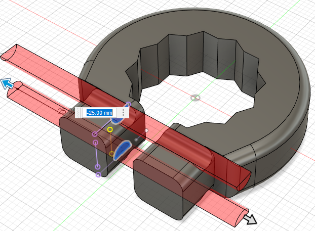 손잡이의 안쪽 끝부분을 파내야 하므로 위와 같이 스케치합니다.