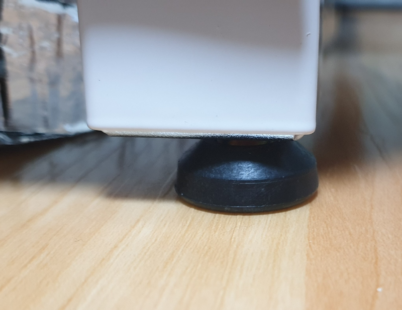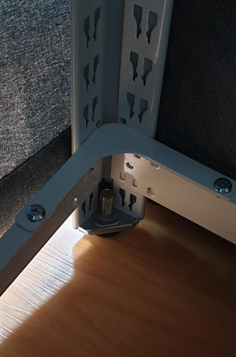 너트가 없어서 설치 후에는 조절이 불가능합니다. 설치 공간 수평이 맞지 않을 때 조절하라고 있는 조절좌인데, 조절을 못합니다. 하중이 걸린 상태에서는 손가락으로 돌리는데 한계가 있습니다.