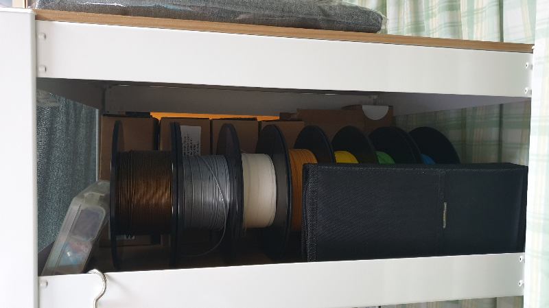 3D 프린터는 높이가 높아서 방바닥에 놓았습니다. 전면 선반 브라켓만 없는 상태입니다.