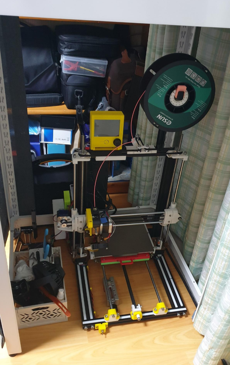 3D 프린터는 높이가 높아서 방바닥에 놓았습니다. 전면 선반 브라켓만 없는 상태입니다.
