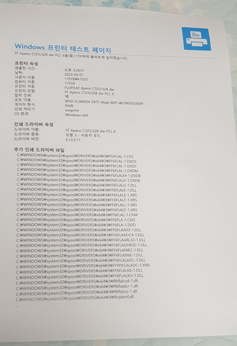 윈도우즈 95나 윈도우즈 11이나 프린터 테스트 페이지 내용은 비슷하다.