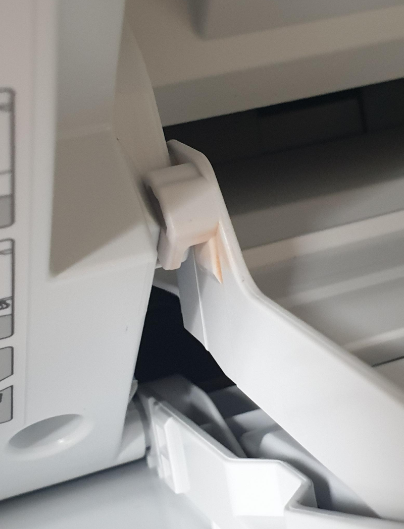 선반에 공간을 충분히 줬더니 ADF 스캐너 덮개를 45도 정도 열 수 있다. 60도까지 열 수 있는 구조 같음.