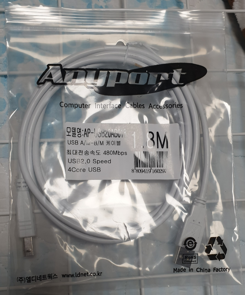 전원 케이블과, 주의사항 종이는 있는데, 설치 설명서가 없다. USB 케이블은 타사 제품이 들어있다.