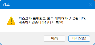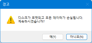 귀찮게 두번 물어보지만 확실히 확인하고 예(Y) 버튼을 누른다.