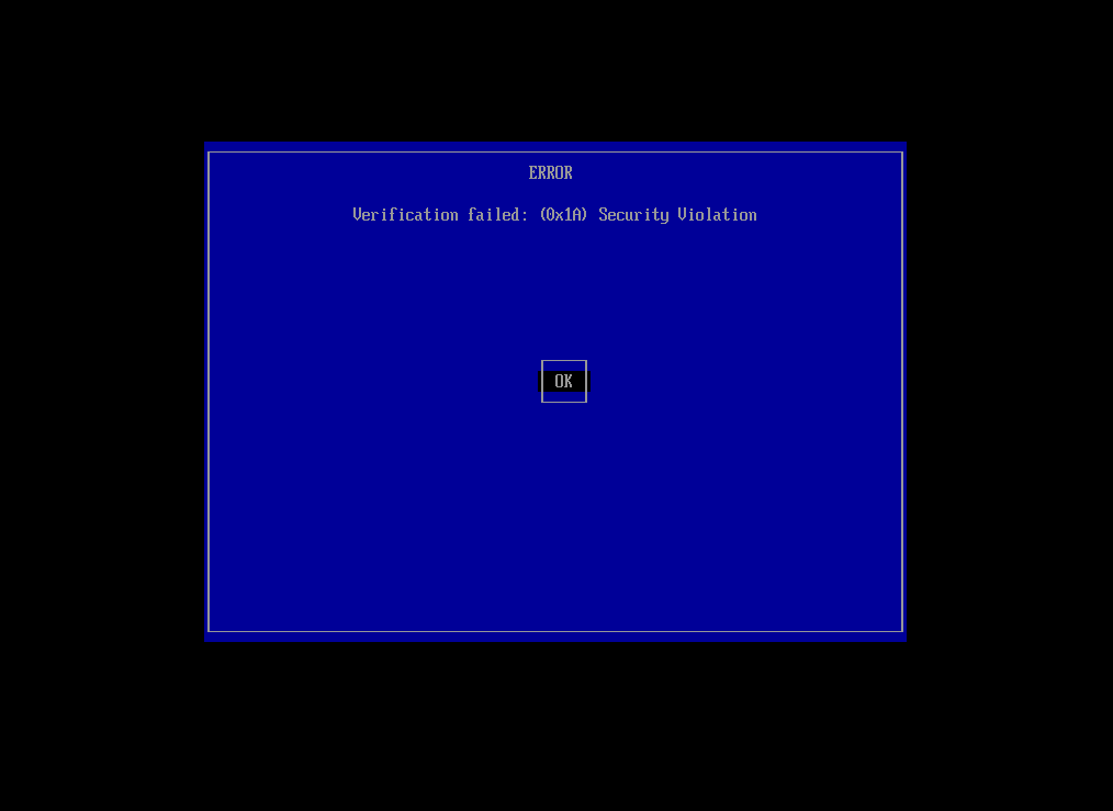 BIOS 설정에서 보안 부팅이 활성화 되어 있다면, Ventoy 부팅 중에 파란 화면을 볼 수 있을 것이다.