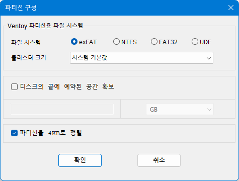 리눅스에서 Ventoy를 사용하면 리눅스 전용 포맷(ext4)을 선택할 수 있다.