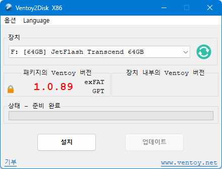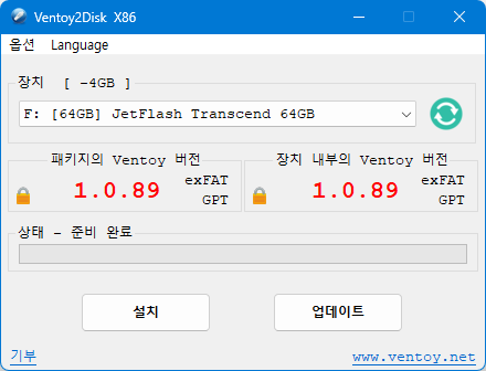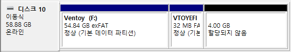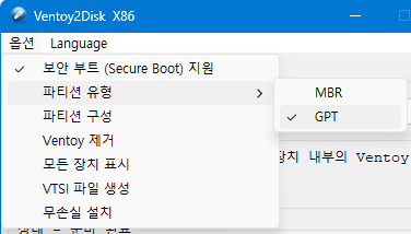 (Ventoy 1.0.15부터 GPT 파티션으로 설치할 수 있다.)