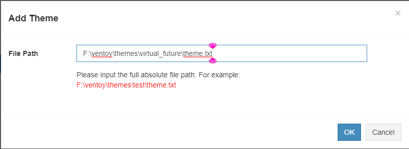 Add 버튼을 눌러서 theme.txt 전체 경로를 입력한다.