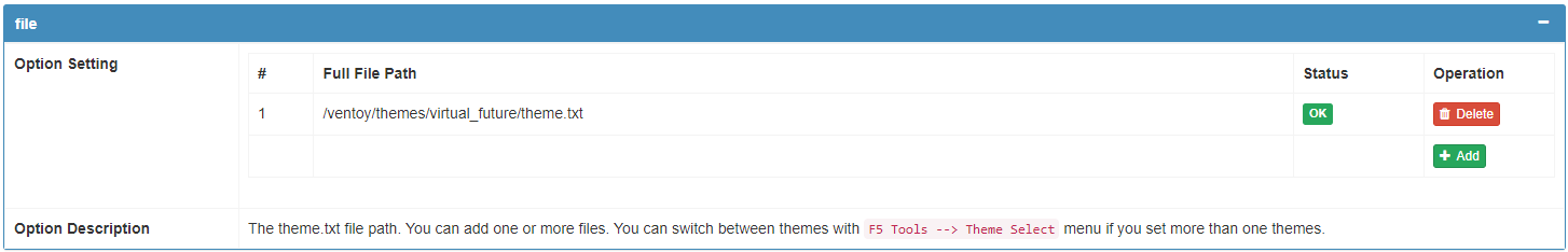 테마를 여러개 등록해서 선택하거나 랜덤 지정할 수 있으며, 부팅 종류별로 테마를 설정할 수 있다.