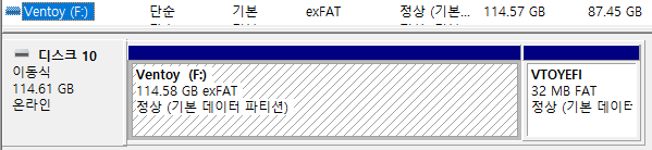 디스크 관리자를 실행하고 USB 디스크 번호를 확인한다.