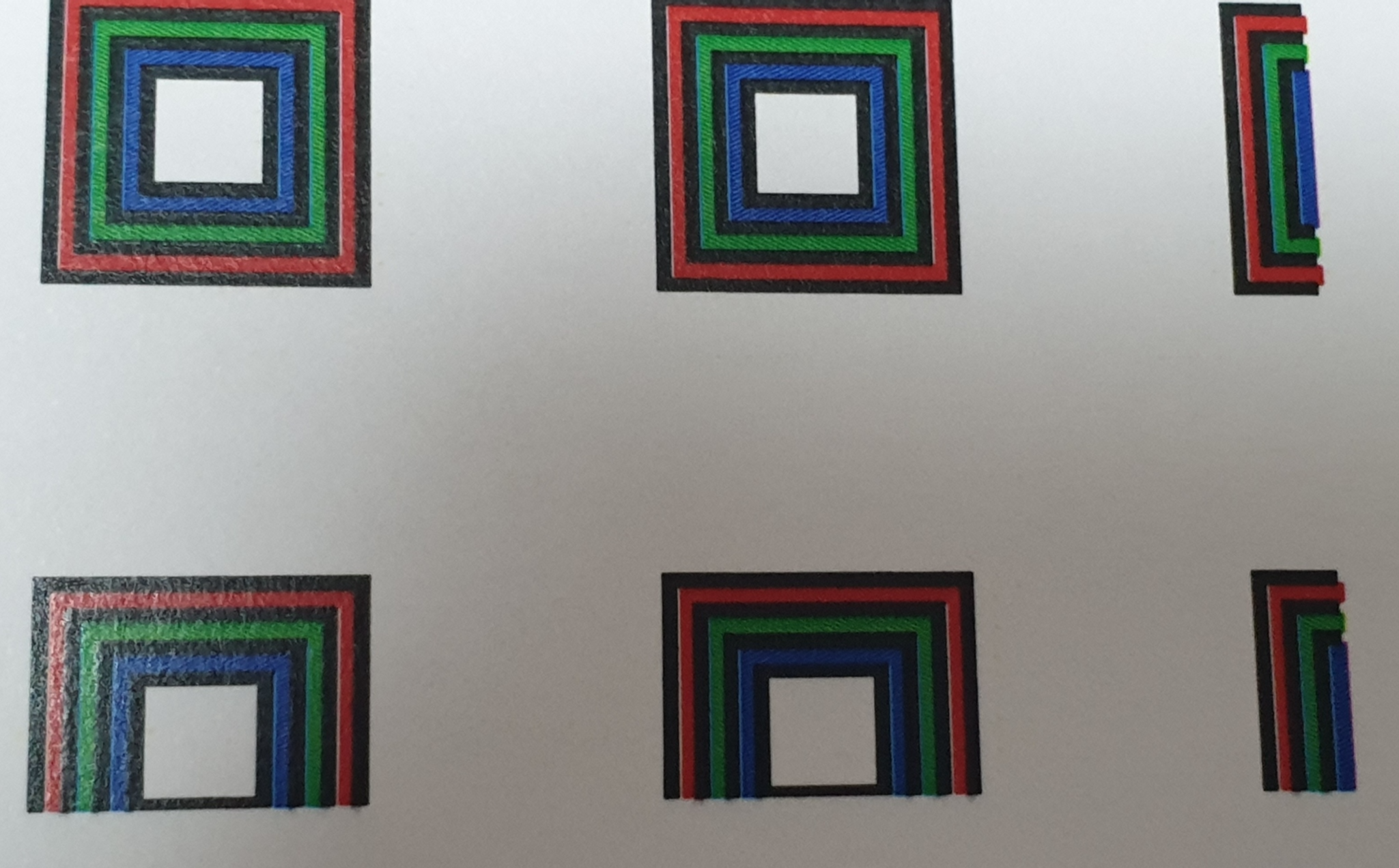 약 0.1mm 틀어졌다. 프린터에서 컬러 보정을 했는데도 틀어지는 것이다.