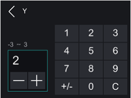 터치 패널의 조정 값 입력을 누르고 항목을 선택하면 숫자를 입력할 수 있다.