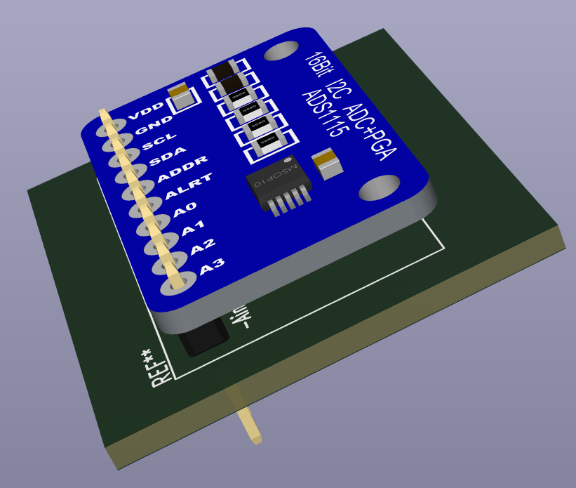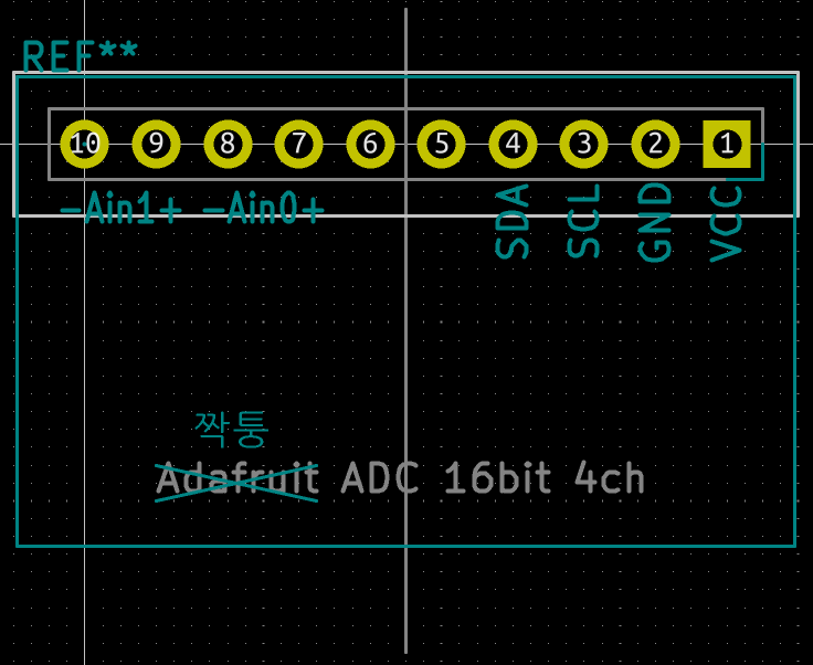 ADS1115 모듈은 핀 헤더 크기만큼 상자를 그려줍니다. PCB 표면에 붙는 영역을 그리는 것입니다.