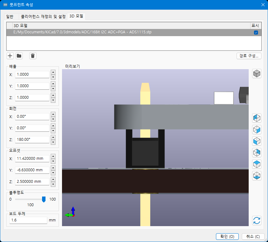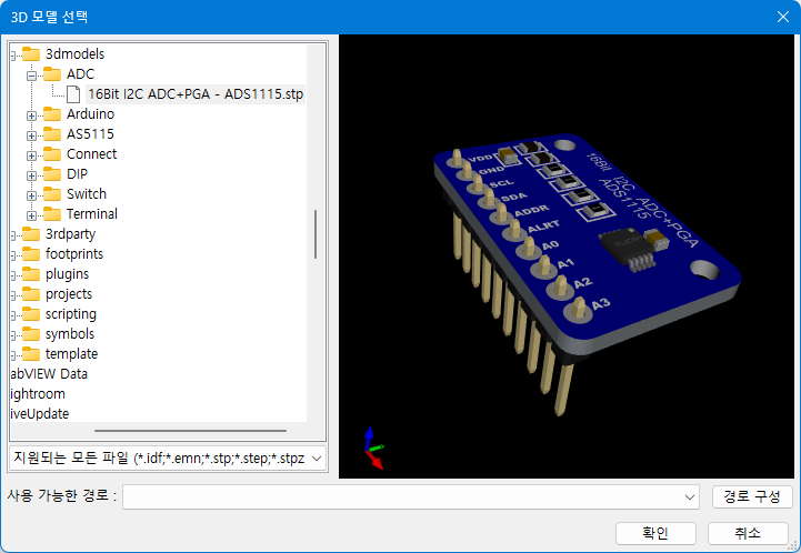 만들어둔 3D STP(STEP) 파일을 선택하고 확인 버튼을 누릅니다.