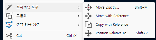 또는 포지셔닝 도구로 절대, 기준, 상대 좌표를 입력해서 개체를 이동할 수 있습니다.