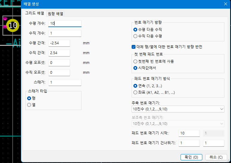 그 다음 패드를 선택하고 Ctrl + T를 눌러서 배열 생성 기능을 사용하면 편리합니다.