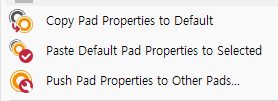 패드를 수정했을 때, 다른 패드에도 적용하려면 단축메뉴에서 기본 속성으로 복사, 붙여넣기 기능을 사용하면 됩니다.