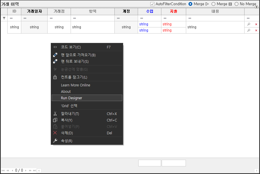 디자인 탭에서 Grid의 Run Designer를 실행한다.