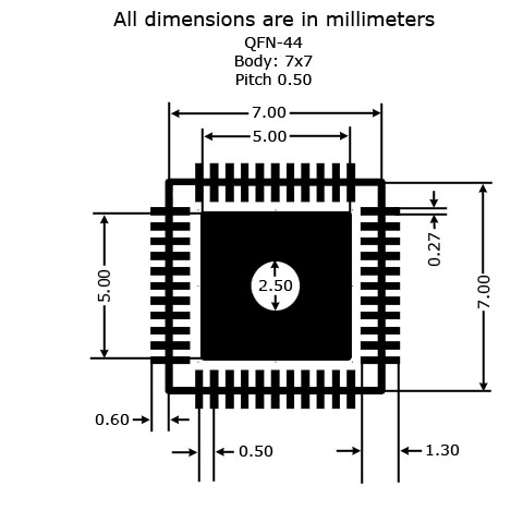 칩셋 크기는 7*7mm이며 68Pin이고, 프로그래밍 가능한 GPIO는 49개이다. 2 종류가 있으며 플래시는 각각 4, 8MB이다.