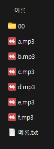 | 메모리에 00이라는 이름의 폴더가 있으면 전원을 켠 후 장치에 있는 모든 사운드 파일을 한 번 재생합니다. 메모리에 99라는 이름의 폴더가 있으면 전원을 켠 후 장치에 있는 모든 사운드 파일을 반복 재생합니다. |