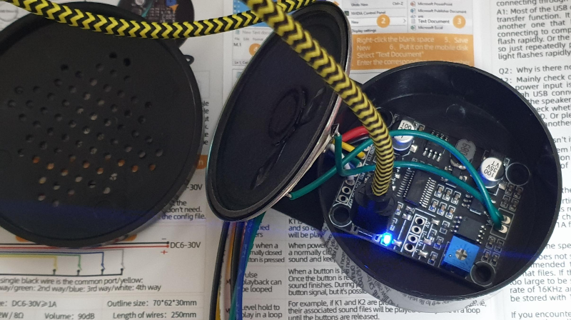 스피커는 8Ω 1W 연결되어 있습니다.