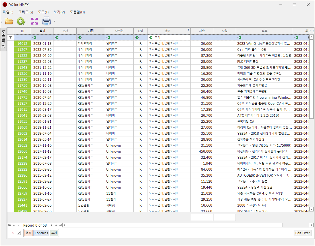 MMEX 1.6.3 버전에는 없고, 필요한 기능이 내가 개발중인 C# 가계부에 있었기 때문에 DB를 새로 연결했다.