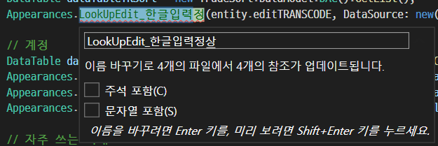 웬만해선 개체 이름은 영어를 사용하는데, 한국 전용 API 같은 경우는 한글을 사용해야 편리하기 때문에 이름을 변경하는 기능은 자주 쓰게 된다. (예: 증권 HTS 개발)