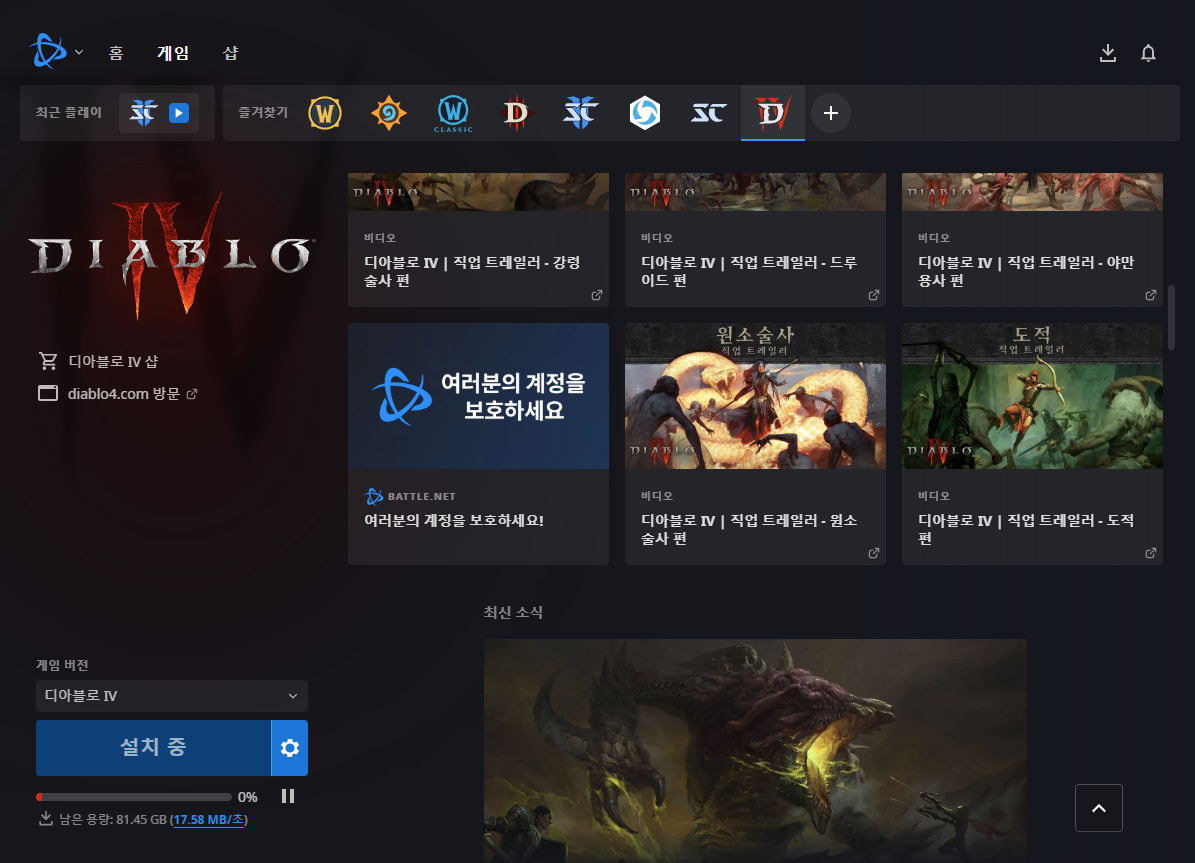 배틀넷 앱을 실행하고, 디아블로 4에서 미리 설치 버튼을 누르면 된다.