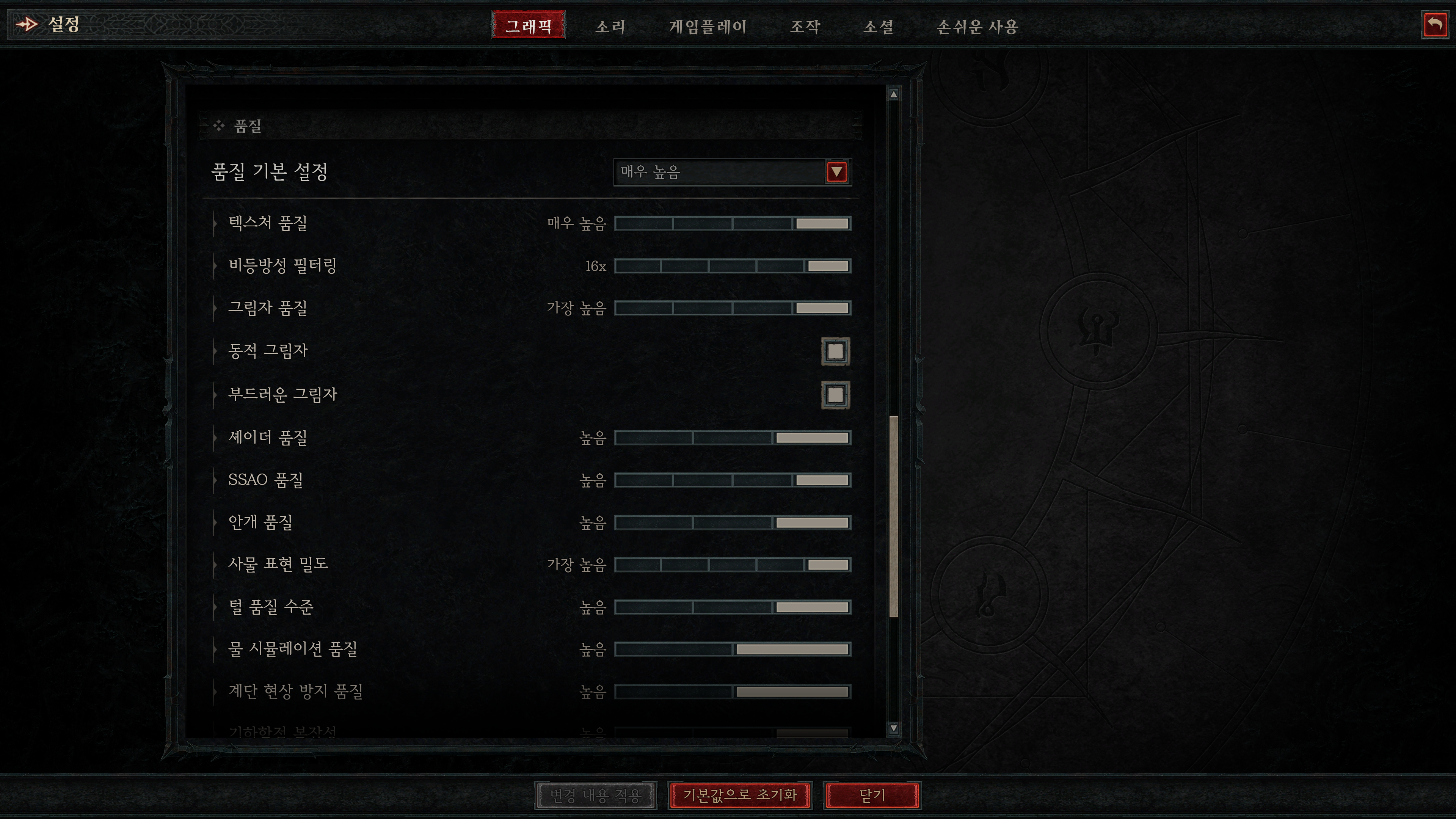 그래픽 설정은 매우 높은 프리셋으로 설정하였다.