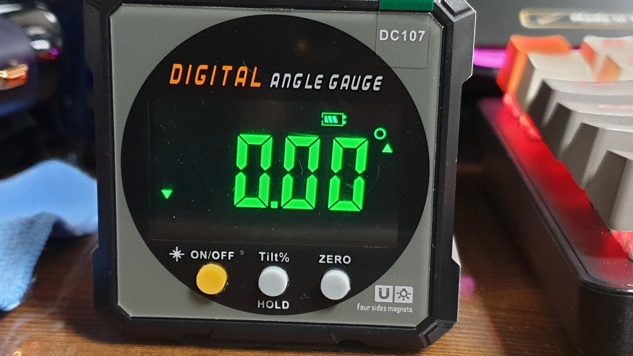 ZERO 버튼을 눌러 책상 유리면을 0.00으로 기준값을 설정했다.