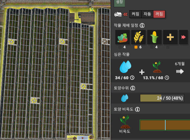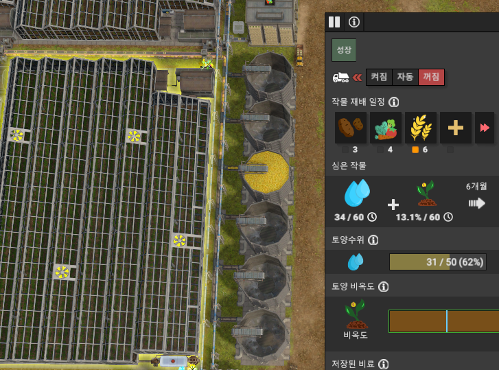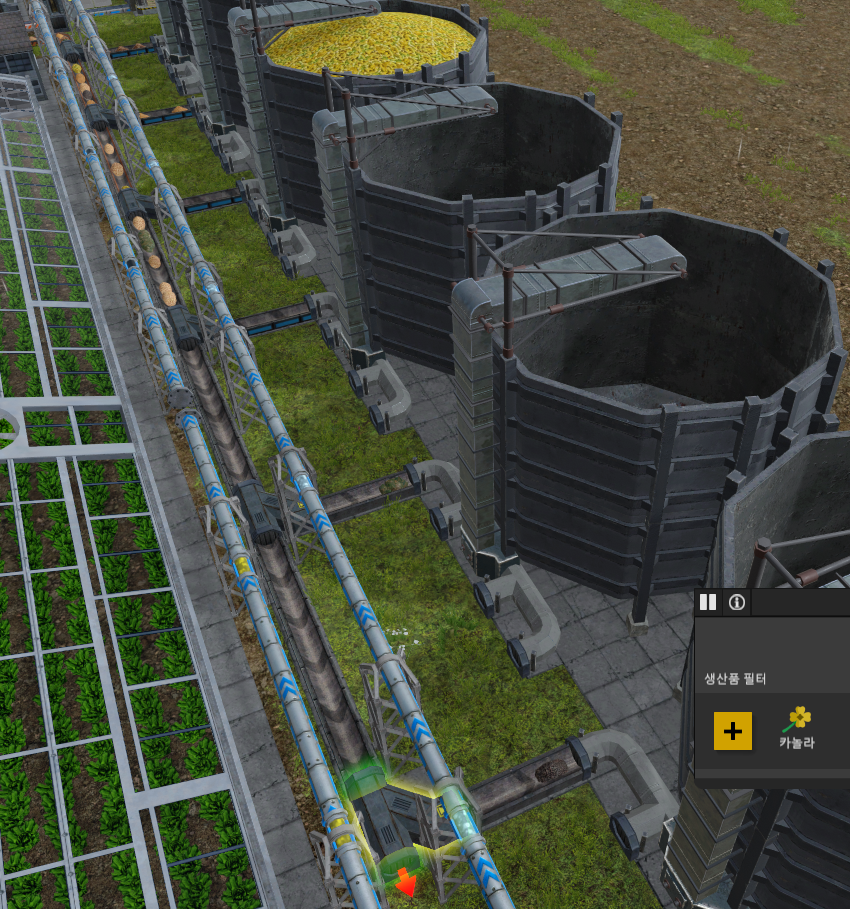 농장은 왼쪽에서 오른쪽으로 물류가 흐르도록 했으며, 왼쪽부터 작물을 3가지씩 시프트하면서 설정하였다.