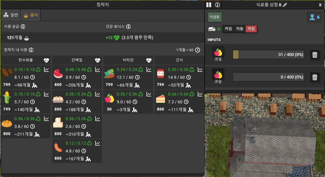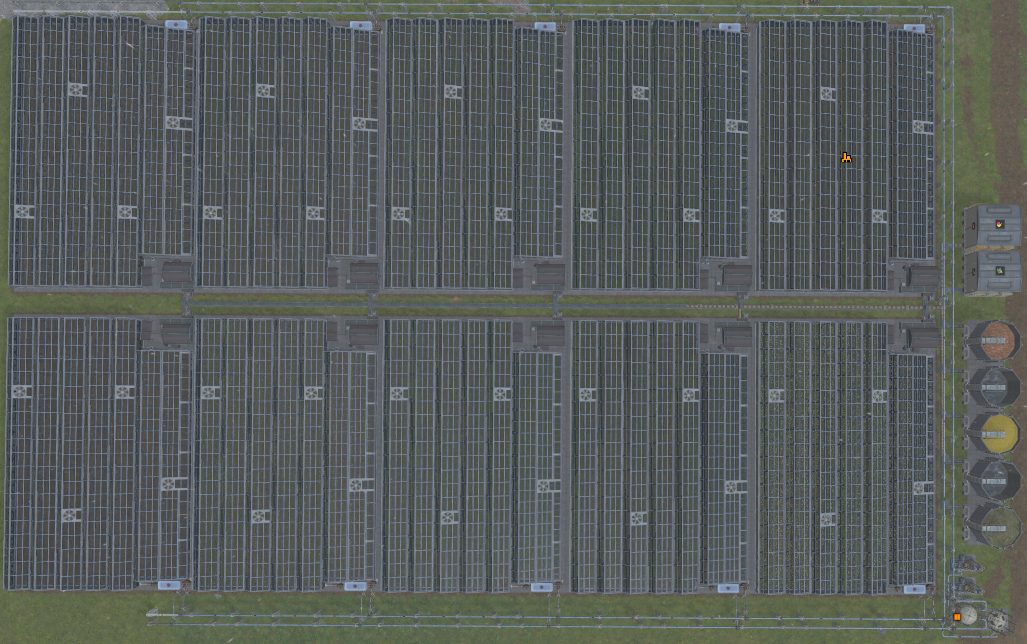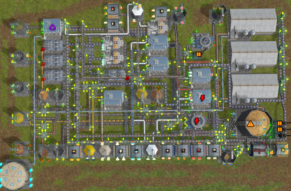 음식을 가공하는 공장은 한 곳에 묶어서 배치하는 것이 자원 낭비가 적다. 위 배치는 공개된 청사진을 변경한 것이다.