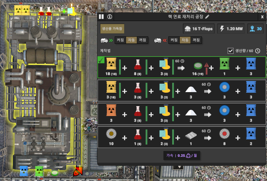 노란색 핵연료 아이템을 재활용하는 공정이다.