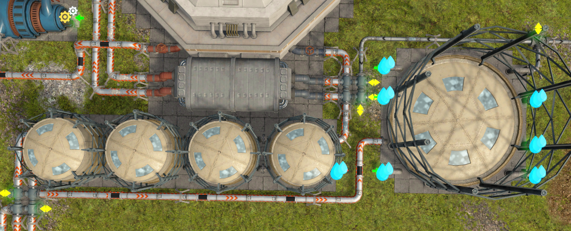 먼저 아랫줄의 터빈 발전기와 냉각탑 1개, 담수기 4개부터 완성한다.
