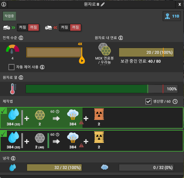 원자로 II는 최대 384 만큼의 증기(고압)를 만들어낸다.