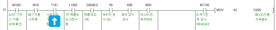 공정 시작 코드에 양수 버튼의 두 번째 타이머(T161)를 사용하였다.