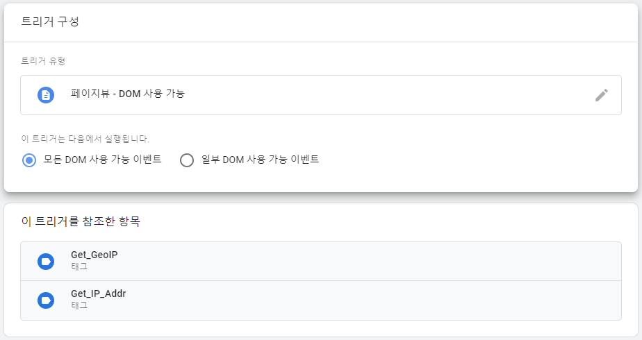 트리거 유형은 페이지뷰 - DOM 사용 가능을 선택한다.