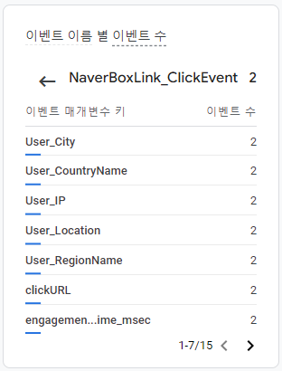 글에서 이벤트 트리거로 설정한 링크를 누르면 실시간으로 집계 된다.
