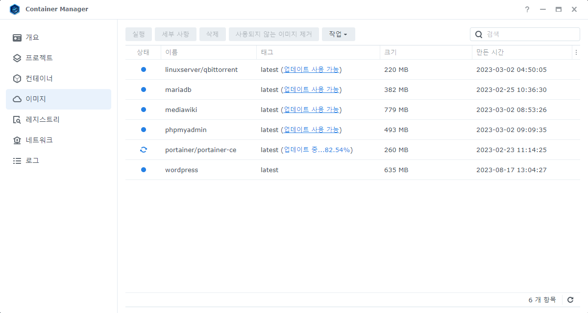내려 받은 이미지를 업데이트 하려면 업데이트 사용 가능 링크를 누릅니다.