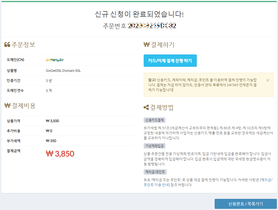 결국 유료 서비스를 선택해야 하는데, 이왕이면 한글 설명이 자세하고, 원하는 SSL을 발급받을 수 있는 사이트에서 신청해 보자.