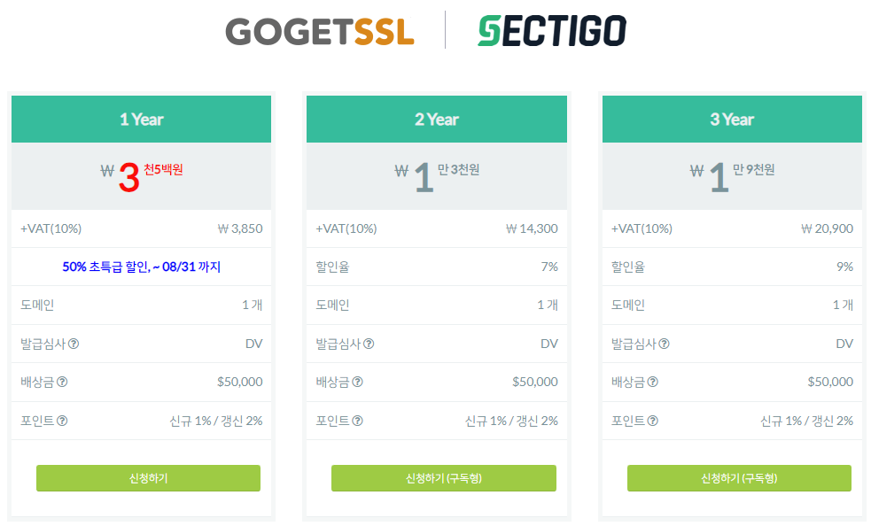 인증서가 만료되면 그때 다시 할인 중인 SSL 인증서를 찾아서 신청하면 된다.
