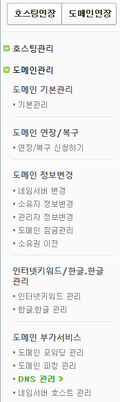 도메인관리 - 도메인 부가서비스 - DNS 관리 메뉴를 클릭한다.