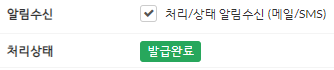 주문 상세 페이지에서도 처리상태가 발급완료로 나타난다.