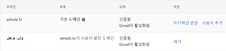 그 다음 구글 인증 페이지에서 인증 절차를 완료하면 도메인 관리 페이지에 도메인이 추가 되며,