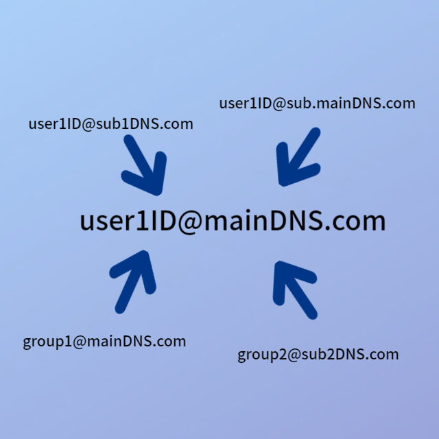 user1ID@mainDNS.com 기본 이메일 주소를 사용하고 있을 때, subDNS.com 도메인을 별칭으로 추가하면